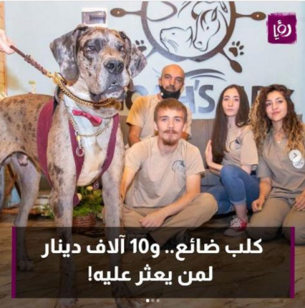 وبحسب ما تداوله رواد مواقع التواصل الاجتماعي، فقد وضع صاحبه مكافأة مالية قدرها 10 آلاف دينار لمن يجد الكلب، وفق موقع (رؤيا الإخباري).