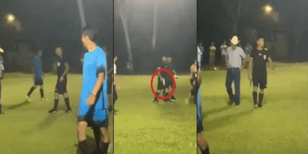قام حكم مباراة كرة قدم برفع مسدسه وإطلاق النار على أحد اللاعبين والمشجعين الذين اعترضوا على بطاقة حمراء أعطاها للاعب.