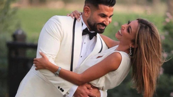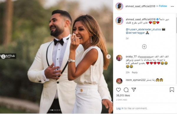 ونشر مجموعة جديدة من الصور الجميلة والعفوية مع عروسه مصممة الأزياء علياء بسيوني وعبر من خلالها عن فرحته الكبيرة قائلاً: "دور دايماً على اللي يفرح قلبك"، وفق (لها).