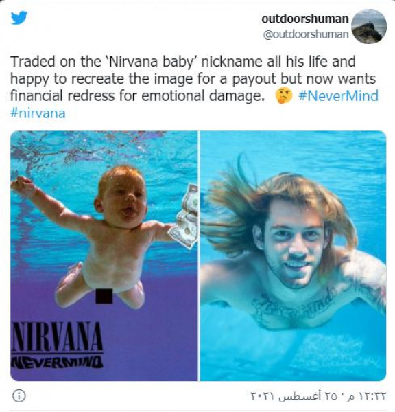شاهد: بعد 30 عام.. طفل ألبوم "نيفيرمايند" الشهير يقاضي الفرقة لاستغلالها له جنسيا