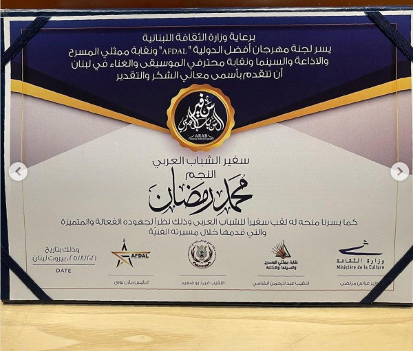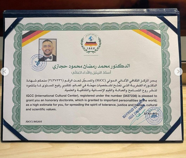 وكان الفنان محمد رمضان، قد نشر عبر حسابه الرسمي على تطبيق تبادل الصور (إنستغرام) صورة لشهادة دكتوراه فخرية، وصورًا خاصة له مع بعض الفنانين اللبنانيين، معلقا: "شكرا معالي وزير الثقافة اللبناني، ونقيب الموسيقيين، ونقيب الممثلين اللبنانيين على منحي الدكتوراه الفخرية في التمثيل والأداء الغنائي، وشكرا المركز الثقافي الألماني في لبنان، على منحي لقب سفير الشباب العربي".