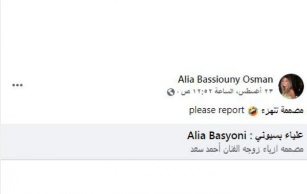 و جاء ذلك بعد أن نشرت صورة من صفحة تنتحل شخصيتها على (فيس بوك)، وطالبت أصدقائها بعمل حظر للصفحة، كاشفة أن من دشن الصفحة هي سيدة، ولكن لم تفصح عن اسمها، واكتفت بكتابة تعليق: "مصممة تتهزأ"، وفق (لها).