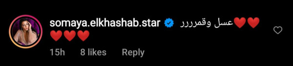 وتفاعلت سمية الخشاب على صورها قائلةً:" عسل وقمر".