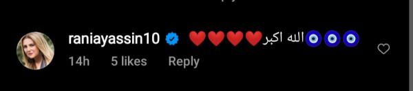 فيما تفاعلت الفنانة رانيا ياسين على صورها وقالت:" الله أكبر".