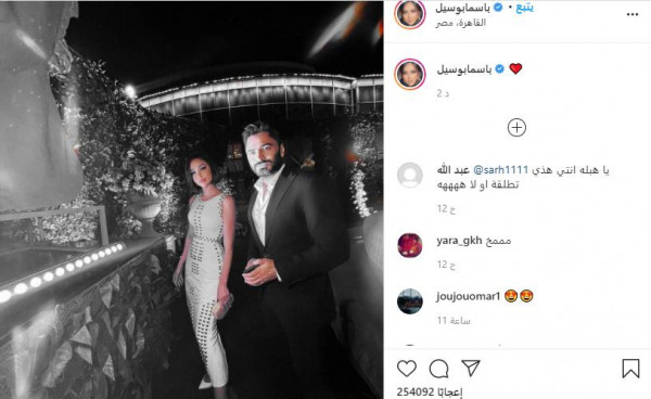 نشرت الفنانة المغربية بسمة بوسيل، صورة خاصة بها على تطبيق تبادل الصور (انستغرام)، ظهرت فيها بإطلالة كلاسيكية في أحد الأماكن برفقة زوجها النجم المصري تامر حسني.