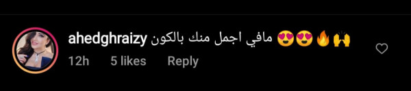 وتفاعل جمهور المغنية وهبي على صورها التي لاقت إعجابهم، حيث علقت عهد وهي إحدى متابعاتها قائلةً: " مافي أجمل منك بالكون ".
