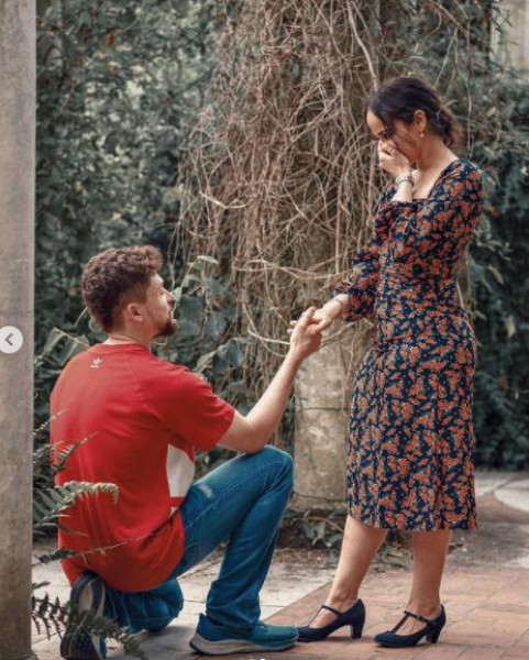 وبينت الصور ظهور نور مع خطيبها، حيث كانت تقف في إحدى حدائق العاصمة البريطانية لندن، وكان أمامها خطيبها يجلس على ركبتيه بطريقة رومانسية لطلب الزواج.