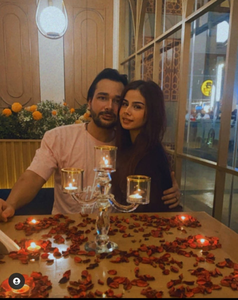 نشرت الممثلة الشابة منة عرفة صوراً لها على حسابها الخاص على موقع تبادل الصور( انستغرام)، تظهر هي وزوجها في مكان رومانسي وأمامها الورود.