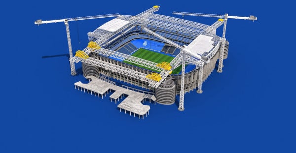 ولم يتم الانتهاء من العمل في مدرجات الطرف الجنوبي والجانب الغربي من سانتياغو برنابيو، وستتم تغطيتهم بأغطية خلال المباريات.