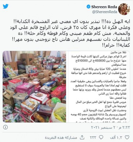 شاهد ماذا علقت شيرين رضا على مهرها من عمرو دياب