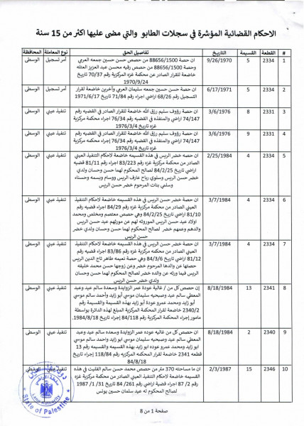 "سلطة الأراضي" بغزة: الأحكام القضائية المؤشرة بـ "الطابو" ولم تنفذ منذ 15سنة لن تُنفذ