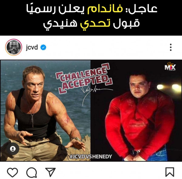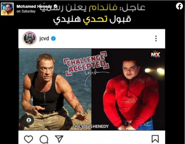أصبح تَحَدّي الفنان المصري الكوميدي محمد هنيدي للنجم العالمي جان كلود فاندام، حقيقة بعد قبوله التحدي وإعلانه الموافقة على تحدّي الفنان محمد هنيدي عند سفح الأهرامات.