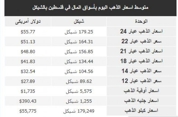 أسعار الذهب في فلسطين