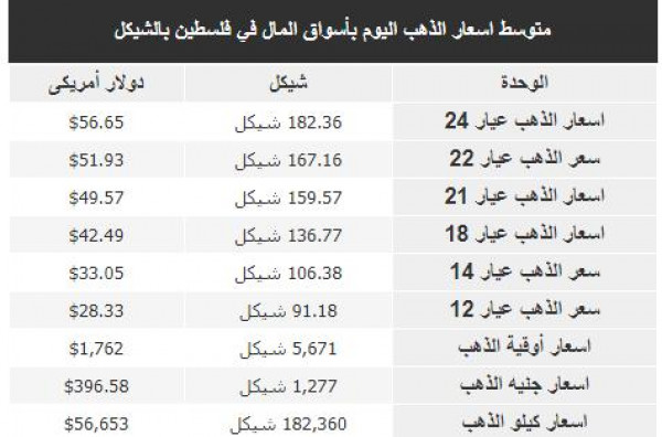 أسعار الذهب في أسواق فلسطين