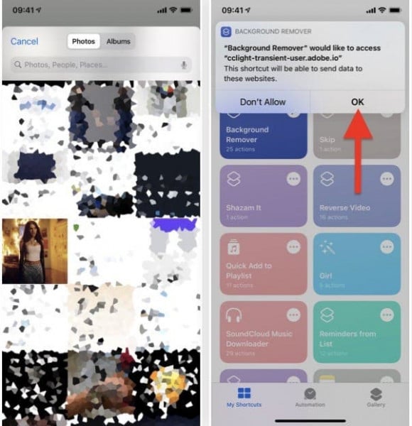 و يعرض لك الاختصار مكتبة الصور الخاصة بك، ويمكنك أن تختار أي صورة ترغب فيها، ولكن كلما زادت جودة الصورة وكان الهدف منفصلًا عن الخلفية وواضحًا كلما كانت إزالة الخلفية أفضل وأسهل.