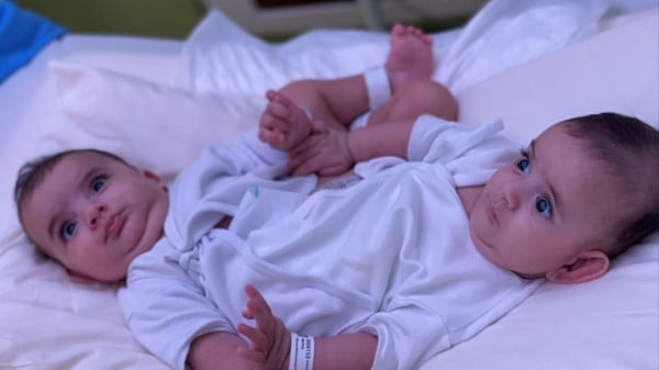 وقالت ماجدة الخطيب مديرة مستشفى السبعين: "إن الطفلين وُلدا في حالة حرجة" إذ "أظهر مخطط صدى القلب أن لدى كل منهما قلبه الخاص به مع أن وضعية قلب أحدهما غير طبيعية".
