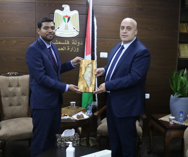 بحث وزير العمل د. نصري أبو جيش، مع سفير جمهورية الهند لدى فلسطين مكل آريا، سبل تعزيز التعاون المشترك في قطاع التدريب المهني واشتراطات السلامة والصحة المهنية وامكانية دمج الشباب في سوق العمل من خلال مذكرة تفاهم مشتركة.