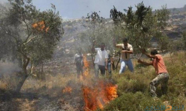 مستوطنون يضرمون النار بأشجار زيتون جنوب نابلس