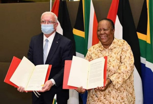 من جهته، اشاد المالكي بالعلاقات التاريخية التي تجمع البلدين من نضال وكفاح لنيل الحرية والاستقلال. وجدد شكره لجمهورية جنوب افريقيا قيادة وشعبًا على دعمها المستمر لدولة فلسطين في المنظمات والمحافل الدولية وفي القارة الافريقية، خاصة موقفها الأخير الداعم لفلسطين برفض قرار انضمام إسرائيل للاتحاد الافريقي بصفة عضو مراقب.