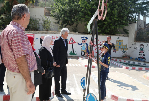 وفي تربية جنين، زار الوزير مدرسة عمر بن الخطاب الثانوية للبنات، حيث تعرف على مشروع "القرية المرورية"، مثمناً المدرسة على تميزها؛ عبر تنفيذ هذه الفكرة التي تعزز لدى الطالبات الوعي بالسلامة المرورية وقوانين المرور وغيرها.