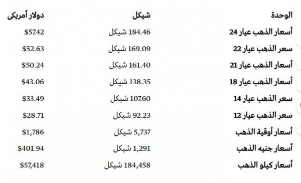 أسعار الذهب في أسواق فلسطين