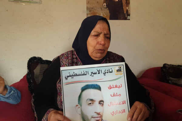 شاهد: والدة الأسـير الفسفوس المضرب عن الطعام تبكي بحرقه إلى جانبه