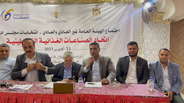 افتتح نائب رئيس اتحاد الصناعات الفلسطينية علي الحايك، اجتماع الهيئة العامة غير العادي والعادي لمجلس ادارة اتحاد الصناعات الغذائية في فلسطين، وذلك لاختيار مجلس ادارة جديد في دورته التاسعة منذ تأسيس الاتحادات العامة للصناعات في الضفة وغزة