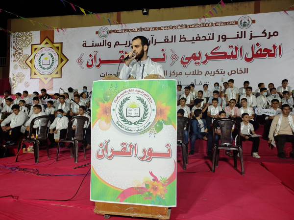 وقال مدير مركز النور عمرو العطل في كلمة ألقاها بالحفل، إننا نحتفي اليوم في هذه الكوكبة من حفظة كتاب الله وطلاب دورات السنة، ونكرمهم لأنهم أهل الله وخاصته.