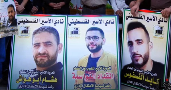 وأكد على أن 7 أسرى فلسطينيون يواصلون إضرابهم المفتوح عن الطعام منذ شهور، رفضاً لسياسة الاعتقال الإداري التعسفية بحقهم، بينما وصلت حالة بعضهم الى حد الخطورة القصوى، حيث يقبع ثلاثة منهم في عيادة سجن الرملة وهم: هشام أبو هواش، وعلاء الأعرج، وشادي أبو عكر، بينما يقبع الاسير كايد الفسفوس، في مستشفى "برزلاي" والأسير مقداد القواسمة في مستشفى "كابلان" والأسير "لؤى الأشقر" يقبع فى عزل سجن مجدو، والاسير "عياد الهريمي " في عزل عوفر.