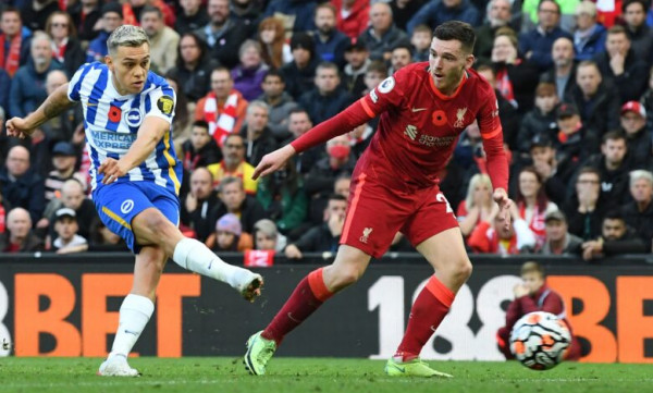 فرض برايتون التعادل الإيجابي، بهدفين لمثلهما، على ليفربول في المرحلة العاشرة من الدوري الإنجليزي الممتاز لكرة القدم (البريميرليغ)، ليفسد على صاحب الأرض استكمال أسبوع مذهل، يوم السبت.
