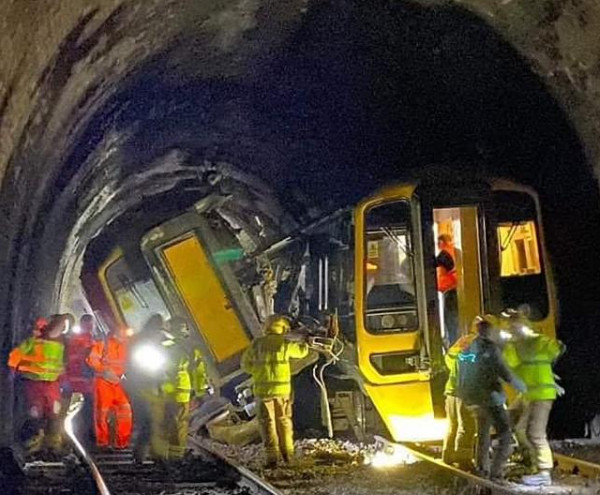 تحدث شهود عيان عن سماع صوت "مثل انفجار قنبلة" أثناء وقوع الحادث ، وهو أحد أخطر الاصطدامات في السنوات الأخيرة على شبكة السكك الحديدية في المملكة المتحدة. القطار المحطم.