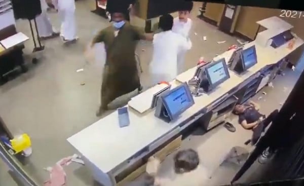 شاهد: أشخاص يعتدون على موظفين في مطعم بالسعودية