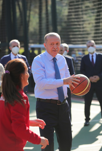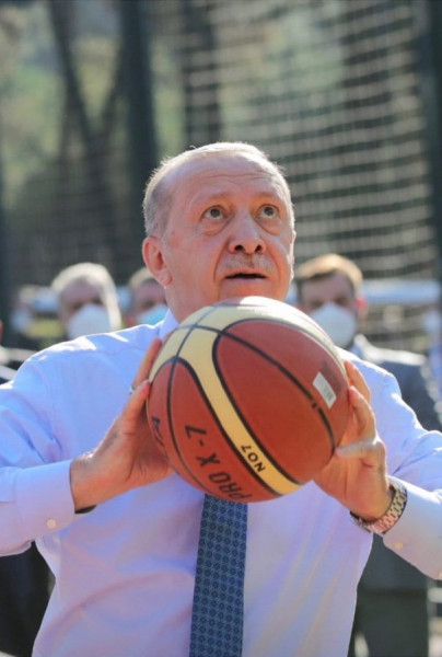 شاهد: الرئيس التركي يلعب كرة السلة مع مجموعة من الشباب