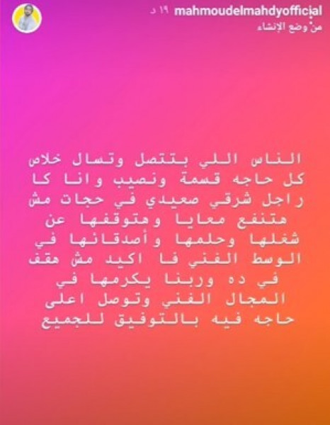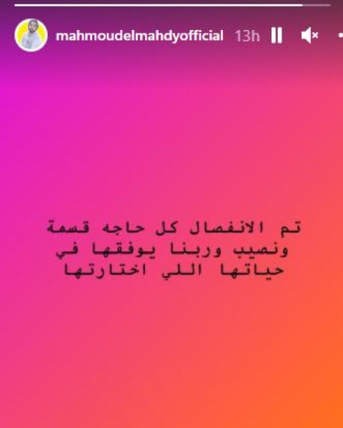 وكتب المهدي عبر حسابه الرسمي على (انستغرام): "تم الانفصال، كل حاجة قسمة ونصيب، وربنا يوفقها في حياتها اللي اختارتها".