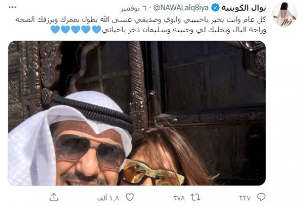 نشرت الفنانة نوال الكويتية، عبر صفحتها الخاصة على موقع (تويتر)، صورة لها ولزوجها مشعل العروج، وهي تحتفل بعيد ميلاده.