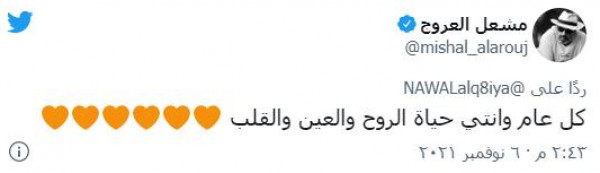 وتفاعل زوجها وردّ بتغريدة كتب فيها: كل عام وأنت حياة الروح والعين والقلب.