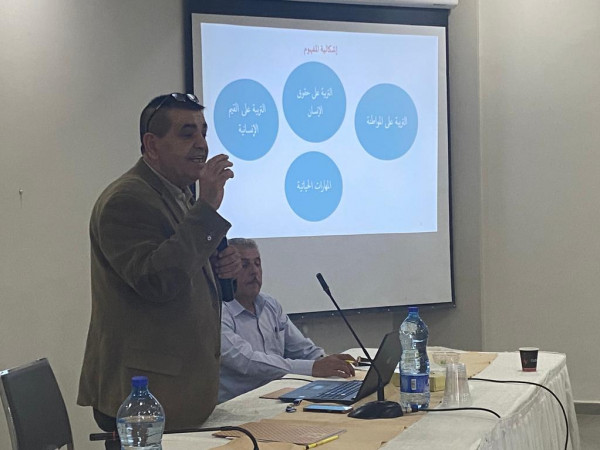 بدوره، قدم منسق المشروع جمال سالم ، عرضاً موجزاً عن برنامج المواطنة وحقوق الإنسان في الوزارة، وآليات مأسسته في النظام التعليمية سواء كان ذلك في السياسات، والمناهج التعليمية، والبرامج والنشاطات الداعمة والمساندة لبناء قدرات المشرفين التربويين ومديري المدارس والمعلمين.