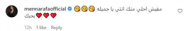 وعلقت منة عرفة قائلةً: " مفيش أحلى منك انتي يا جميلة بحبك".