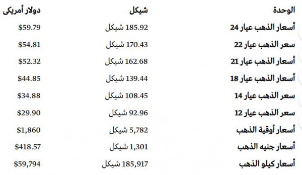 أسعار الذهب في أسواق فلسطين