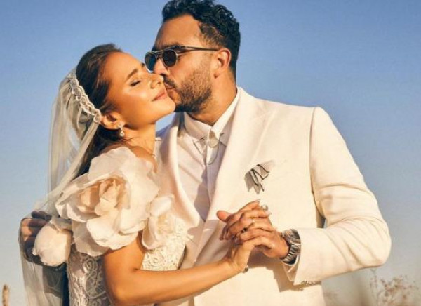 و كانت الفنانة المصرية قد ظهرت برفقة زوجها، حيث التقطت الكاميرات عاشور، وهو ينفعل بغضب على جمهورها أثناء محاولتهم التقاط الصور مع زوجته.