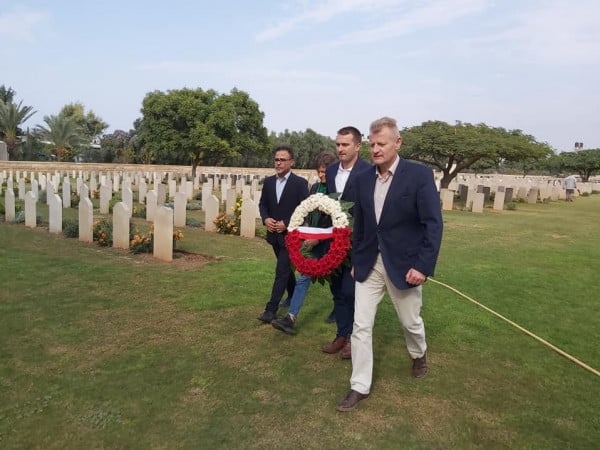 وفي نهاية الزيارة قام السفير لدى السلطة الفلسطينية بوضع اكليل من الورد على اضرح الجنود البولنديين المتواجدين في المقبرة البريطانية في غزة.