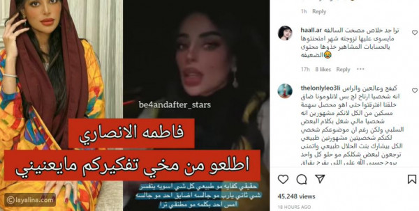 و في مقطع الفيديو هاجمت فاطمة الأنصاري متابعيها قائلة: "حقيقي كفاية مو طبيعي، كل شيء أسويه يتفسر شيء ثاني، يا رب مو جالسه أضايق أحد، مو جالسه أمس أحد بكلمة مو منطقي ترا من يقوم بالتعليقات التي تنكتب عني، نفسي أقولكم شيء واحد اطلعوا من مخي، الله يرضى عليكم".