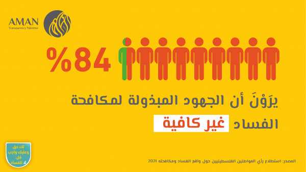 أغلبية المواطنين (63%) ما زالوا يرون أنّ مستوى انتشار الفساد في مؤسسات السلطة الوطنية ما زال كبيراً وأنّه قد ازداد في العام 2021