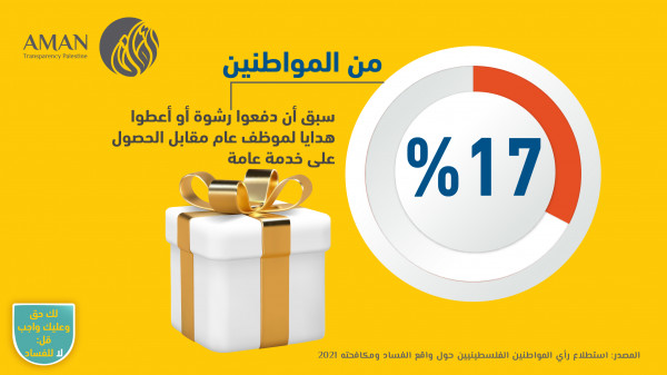 17% من المواطنين سبق أن دفعوا رشوة أو أعطوا هدايا لموظف عام مقابل الحصول على خدمة عامة