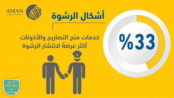 اعتبر 33% أنّ خدمات منح التصاريح والأذونات الرسمية هي الأكثر عرضةً للرشوة