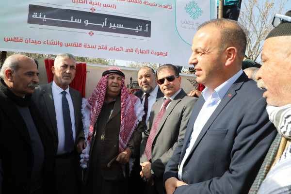 من جانبه، أعرب أبو سنينة عن سعادته بإعادة اللُحمة لطرفي المدينة في منطقة قلقس المفصلية، موضحاً أهمية هذا المشروع الذي يُعتبرُ حلاً لإنهاء معاناة سكان المنطقة اليومية، لافتاً إلى أنّ فرحة الأطفال وطلبة المدارس في قلقس لا تعادلها فرحة بتحويل حلمهم بعبور الشارع بأمان إلى حقيقة، مثنياً على صمود المواطنين في قلقس وإصرارهم على فتح هذا الطريق الذي يصلهم بأهاليهم في مدينة الخليل، مشيداً بجهود الهيئة العامة للشؤون الفلسطينية وأهالي قلقس وتعاونهم مع بلدية الخليل لفتح سدة قلقس، مبيناً أنّ بلدية الخليل أول بلدية فلسطينية تعمل على الطريق الالتفافي، مشيراً إلى أنّ خربة قلقس ستشهد عصراً جديداً من التطور والحداثة، كونها منطقة توسع حضري وسيتم استثمار أراضيها في مشاريع اقتصادية وزراعية وإسكانية في المستقبل القريب.