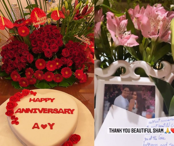 ونشرت صبري صورة كعكة كتب عليها: "الذكرى السنوية السعيدة أحمد وياسمين"، كما ظهرت ياسمين وهي تستطلع رسائل التهنئة والهدايا التي وصلت لها وكان من بينها رسالة من صديقة لها تدعى شام التي قدمت لها هدية مكونة من الورود وصورة تجمع ياسمين صبري وزوجها أحمد أبو هشيمة.