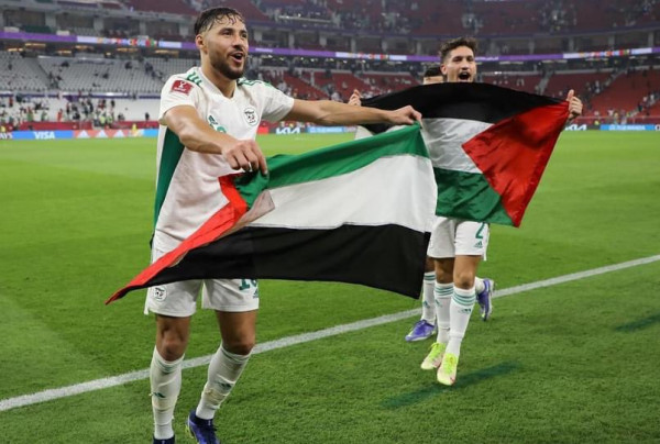 وتشيد الحركة الدائرة الرياضية بالتضامن العربي الكبير مع القضية الفلسطينية، في بطولة كأس العرب، وخاصة من الأشقاء الجزائريين ممثلاً بمنتخبهم الأول لكرة القدم وتضامنهم الكبير لفلسطين وجماهيره العريضة، ورفع أعلام فلسطين.
