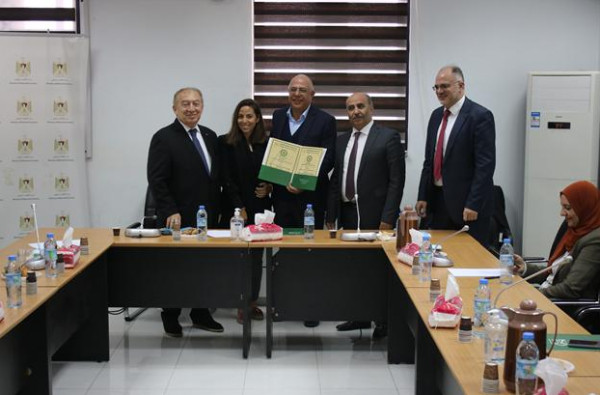 سلّم كل من وزير الاقتصاد الوطني رئيس مجلس إدارة مؤسسة المواصفات والمقاييس الفلسطينية أ.خالد العسيلي و وزير الزراعة أ. رياض العطاري و مدير عام مؤسسة المواصفات والمقاييس م. حيدر حجه ، اليوم ، شهادات الممارسات الزراعية الجيدة PAL.G.A.P Certificate التي تمنح للمرة الأولى لعدد من المنشآت الوطنية في مجالات الزراعة ، وذلك بعد إجراء الفحوصات الفنية، واستيفاء المنتجات لمتطلبات المواصفات الفنية، والتدقيق على أنظمة الجودة داخل هذه المنشآت.