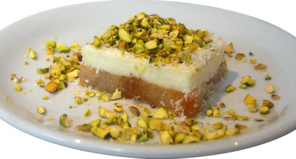 - زيّني صينية عيش السرايا بالفستق الحلبي، اللوز وزهر الليمون ثم قدميها.
